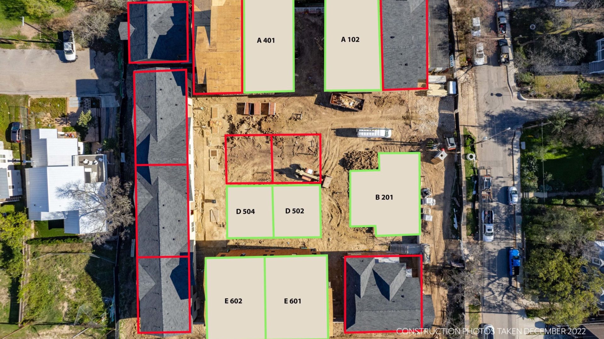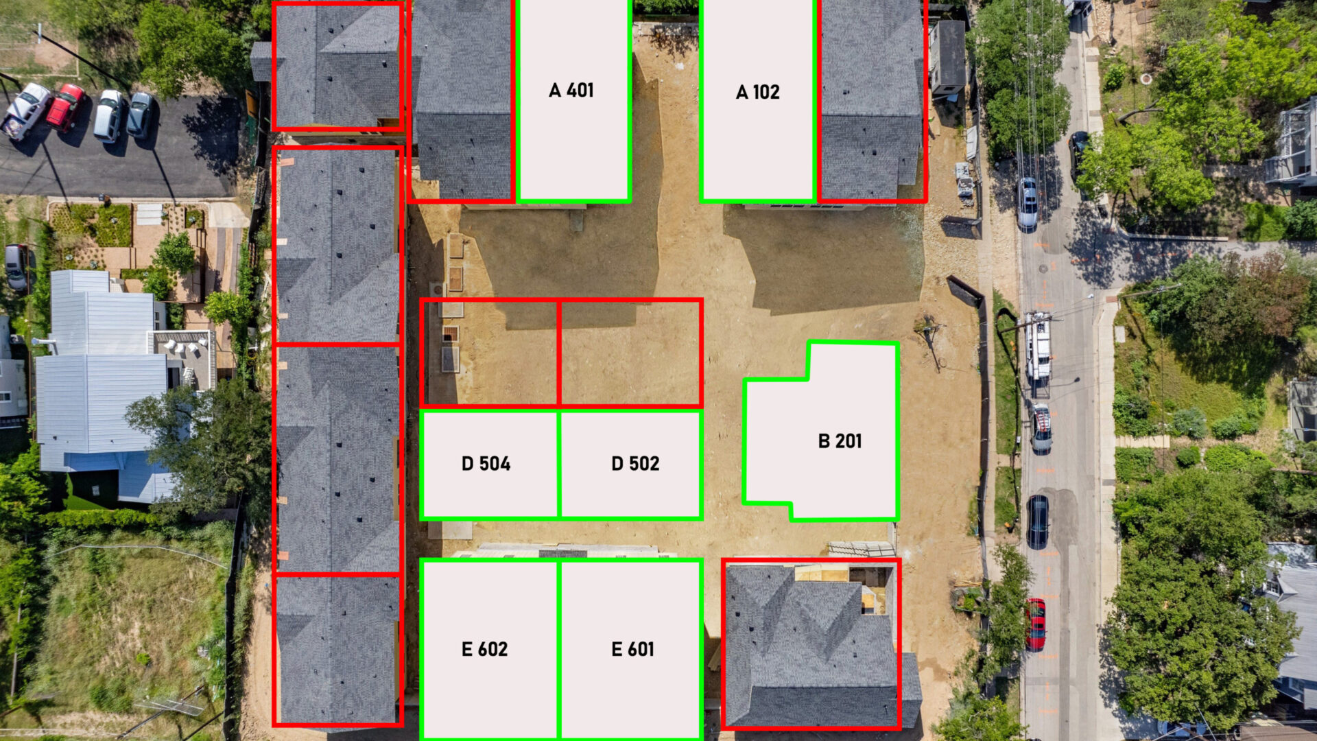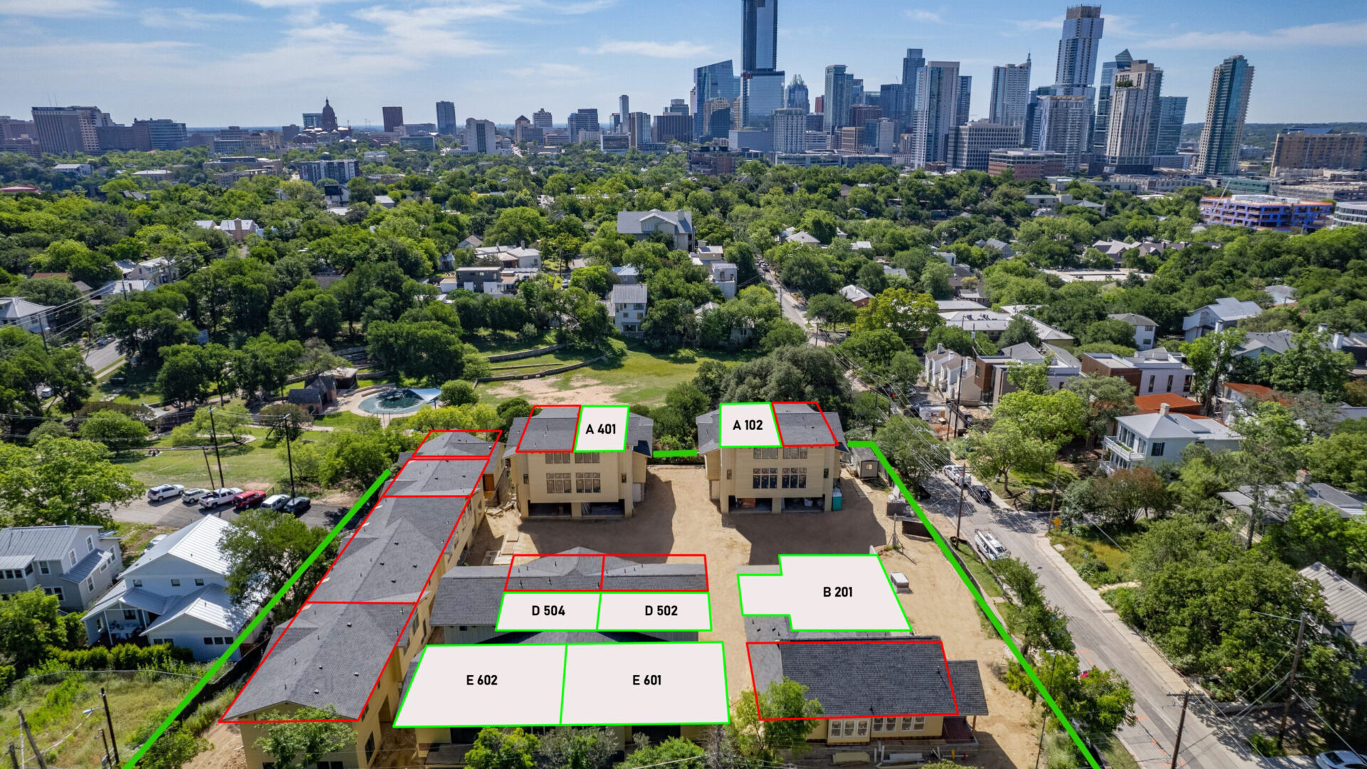 Hover over the units below for more information such as bed+bath count, unit size & pricing. Click the units to download the floor plans!